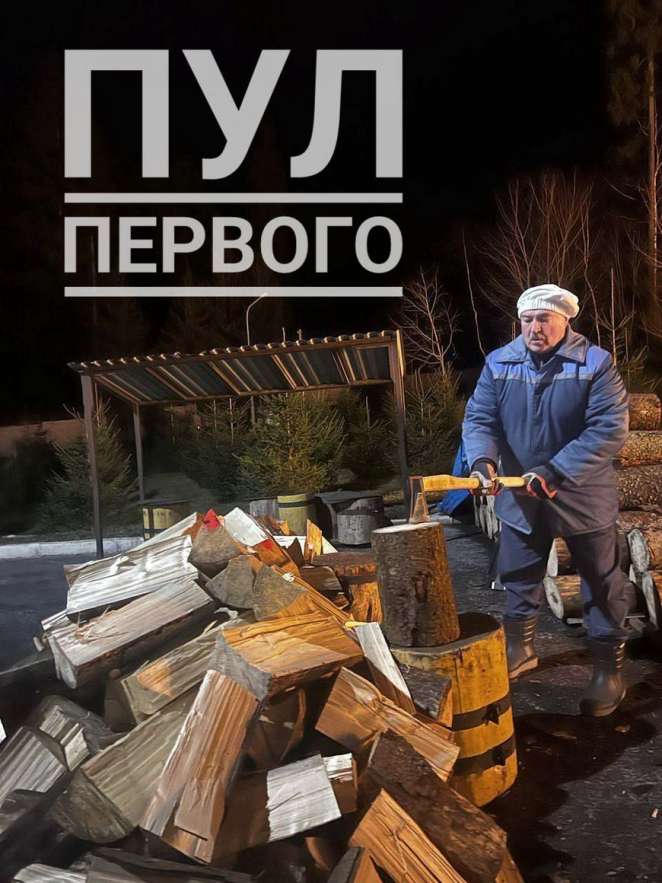 И вот вечером 22 января телеграм-канал «Пул первого» выложил небольшое видео, на которых белорусский правитель предстаёт с топором в руке. В нелепом головном уборе, фуфайке и сапогах. Вокруг навалено много нарубленных дров, но сам процесс колки не показан. Так что кто на самом деле заготовил дрова не понятно.