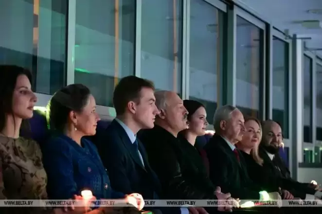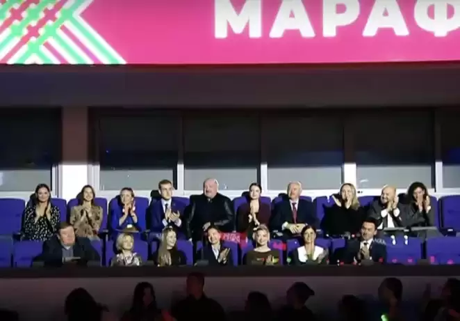 На концерте появился и сам политик со своим окружением. Интересен состав тех, кого Лукашенко посадил рядом с собой.