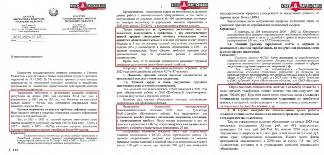«Киберпартизаны» опубликовали документ за подписью председателя Комитета государственного контроля Василия Герасимова, в котором тот описывает кадровые проблемы в сельском хозяйстве.