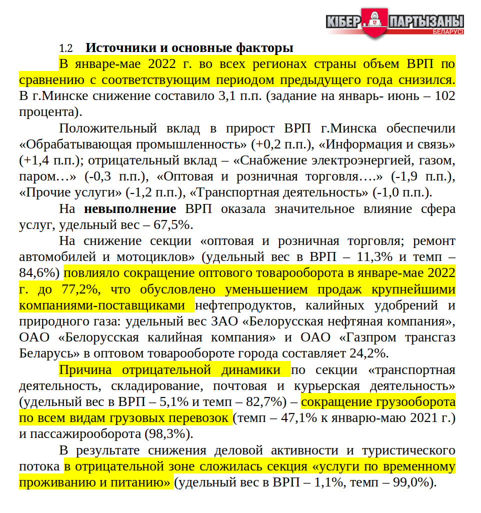 Так, например, на скринах ниже чиновники жалуются на существенное снижение ВРП (валовый региональный продукт) и потери экспортной выручки предприятий Минска:
