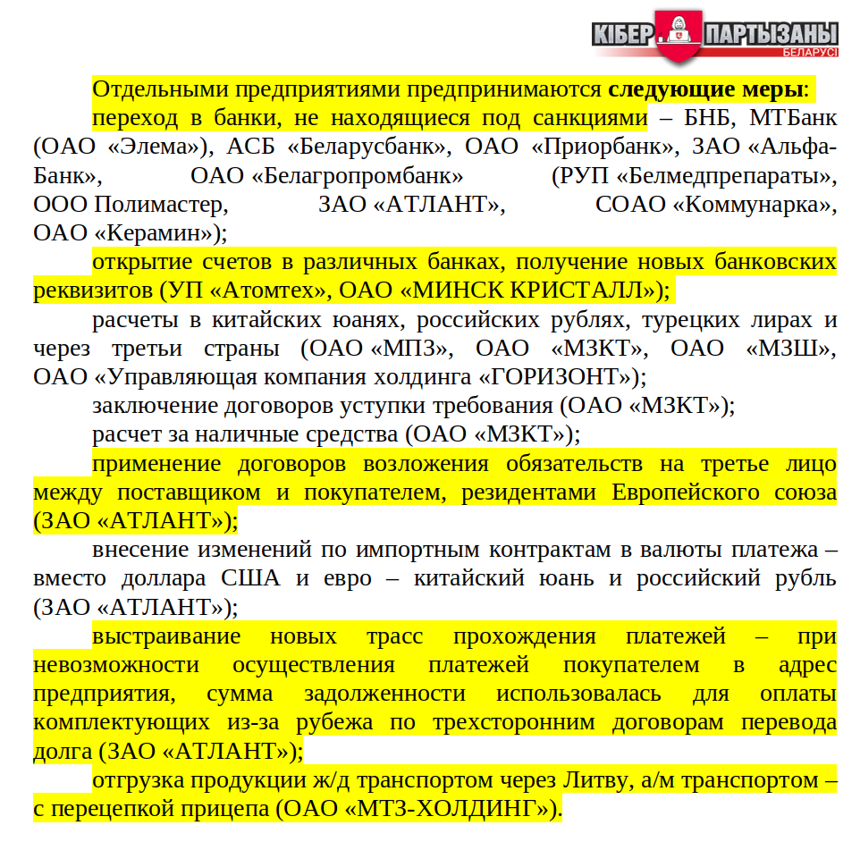 А также приводятся некоторые схемы по обходу санкций ЕС и США с примерами конкретных предприятий Беларуси: