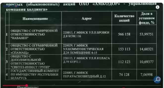 Юридические лица — акционеры «Амкодора». Фото: Скриншот YouTube