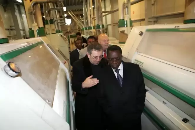 Карчевский и Зингман показывают премьер-министру Танзании Мизенго Пинда мукомольный завод в Польше. 2014 год. Фото: rweyunga.blogspot.com