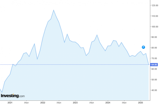 От фондовых рынков не отстает и нефть. На момент подготовки этой статьи баррель марки Brent стоил $64, и это минимум с марта 2021 года. Цена этой марки так или иначе влияет на стоимость многих сортов нефти на мировом рынке.