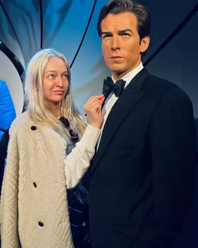 Анжелика Мельникова и восковая фигура Джеймса Бонда. Фото с ее страницы в фейсбуке
