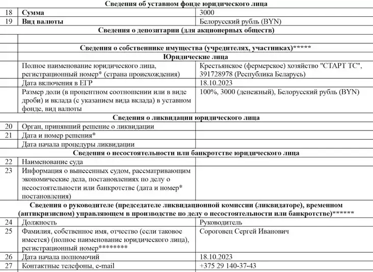 Сыроварня и пекарня принадлежат ООО «Милккоп старт». Это предприятие было зарегистрировано в октябре 2023 года. У него только один владелец — крестьянское (фермерское) хозяйство «Старт ТС», директором которого указан Сороговец Сергей Иванович.