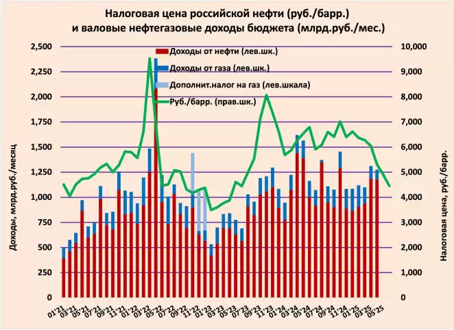 В-третьих, российская налоговая система устроена так, что расчёт налогов осуществляется, исходя из цены нефти (которую объявляет Минэкономики) по итогам предыдущего месяца. Т.е. налоги, поступившие в апреле, рассчитывались из мартовской цены нефти( $59/барр.). Апрельская цена ($54,8/барр.) окажет своё влияние в мае. И тут начинается самое интересное.