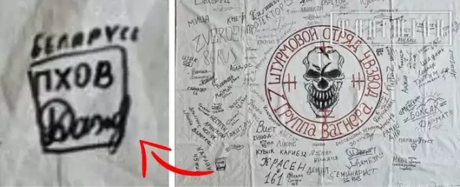 В целом, наемник не стесняется своего участия в агрессии против Украины. Позывной «Пхов» Кажарский взял по району своего проживания. Фотографию личного жетона (ЧВК, 7 ШВ, 4 ШО, Пхов, С-9850) и свой автограф на флаге штурмового отряда 4-го взвода группы Вагнера с позывными он также публиковал на своей странице.