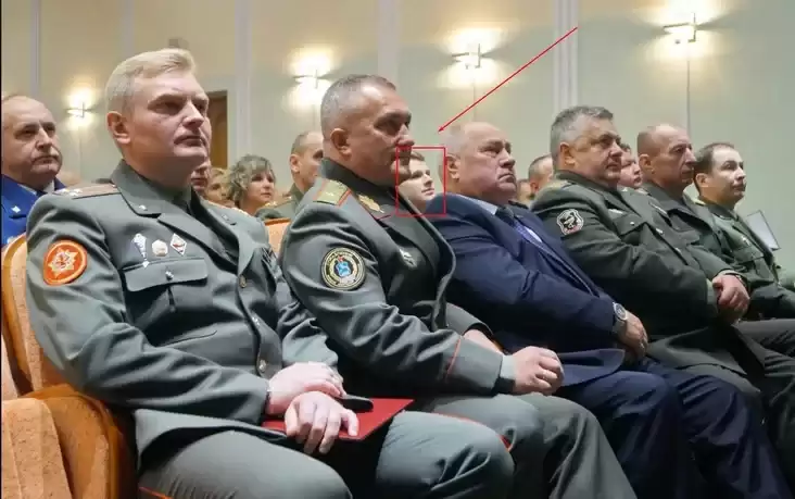 Алексей Лобеев выглядывает из-за подбородка руководителя ГРУ Руслана Косыгина