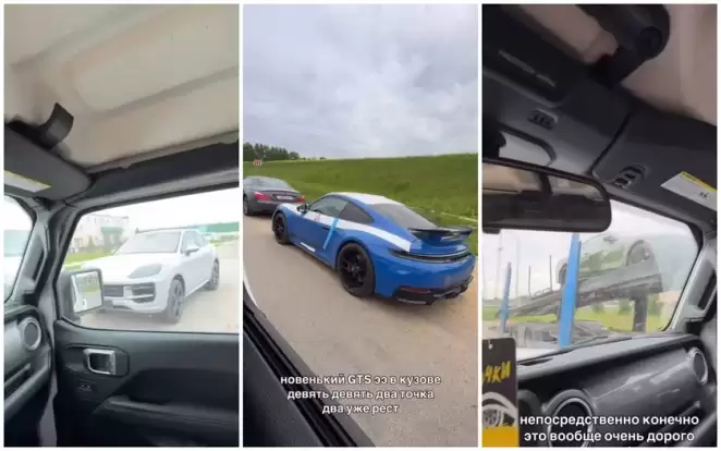 Первыми на видео попадают Porsche Cayenne, Porsche GTS и BMW M4.