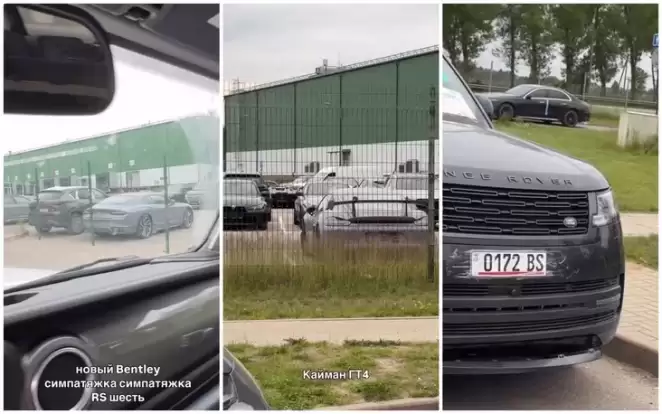 Среди премиальных машин есть и варианты, которые доставили в Беларусь из Штатов через Грузию, так как на Range Rover на видео видны грузинские транзитные номера.