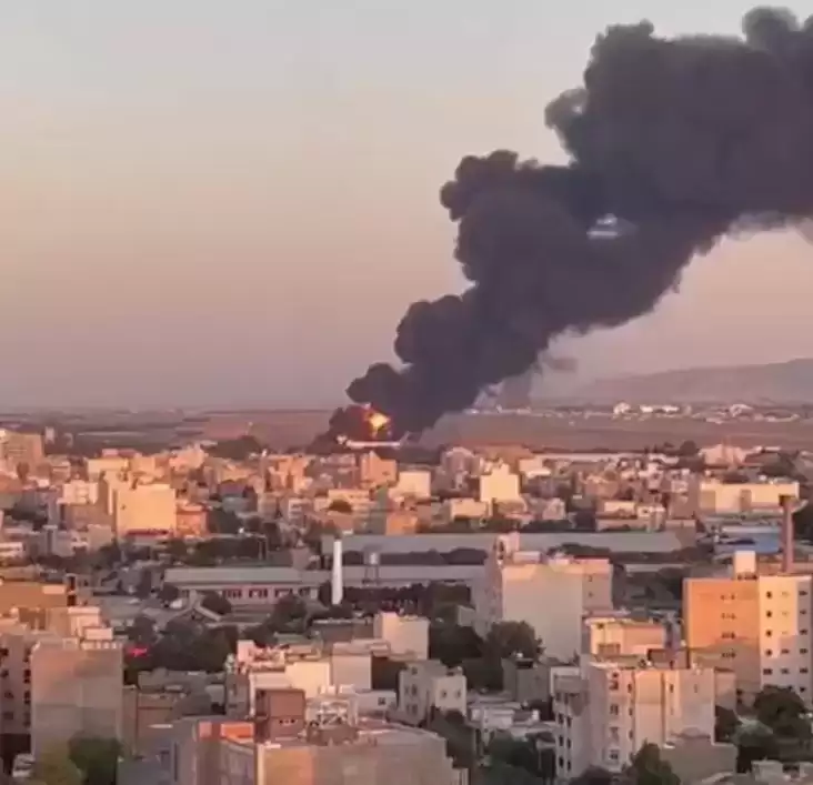 Пожар в результате израильского удара по авиабазе в Мешхеде. Скриншоты видео