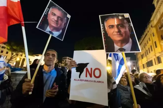 Демонстрация иранских эмигрантов в Риме с портретами Резы Пехлеви. Фото: Andrea Ronchini/NurPhoto via Getty Images