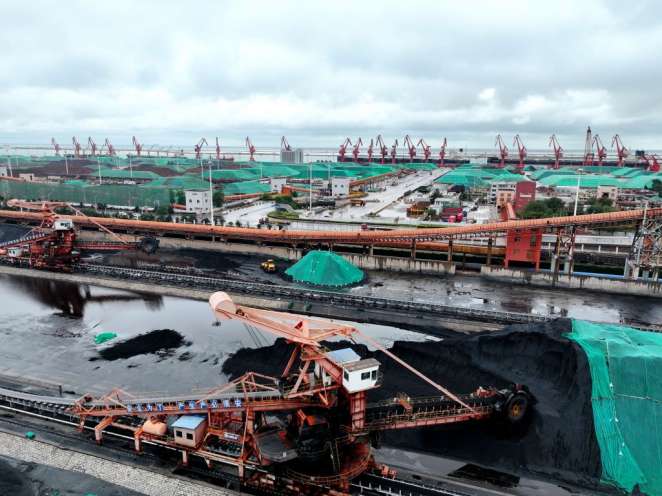 Сортировка угля, выгруженного с грузовых судов в угольном терминале порта Ляньюньган, провинция Цзянсу, Китай. 2 июня 2025 года. Фото: CFOTO / Future Publishing via Getty Images