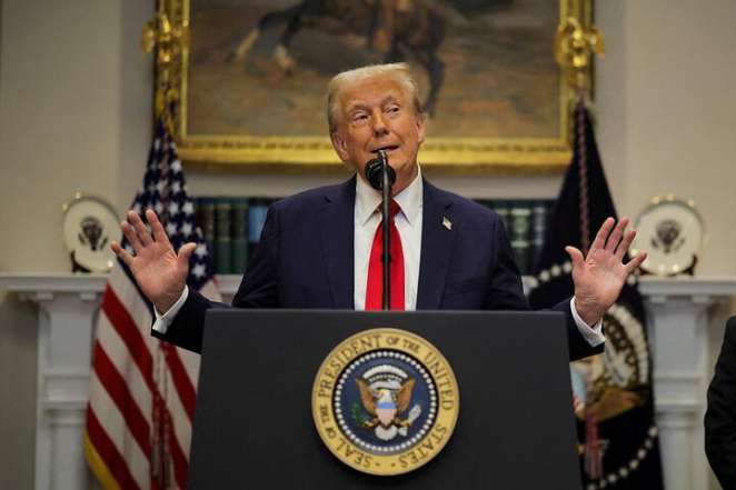 Президент США Дональд Трамп выступает с речью об инфраструктуре ИИ в Белом доме в Вашингтоне, США, 21 января 2025 года. Фото: Reuters