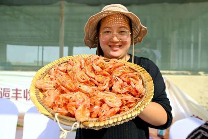 Женщина держит корзину с креветками во время фестиваля урожая китайских фермеров. Циндао (Qīngdoo), Китай. 23 сентября 2021 года. Снимок носит иллюстративный характер. Фото: Sipa Asia / Sipa USA / East News