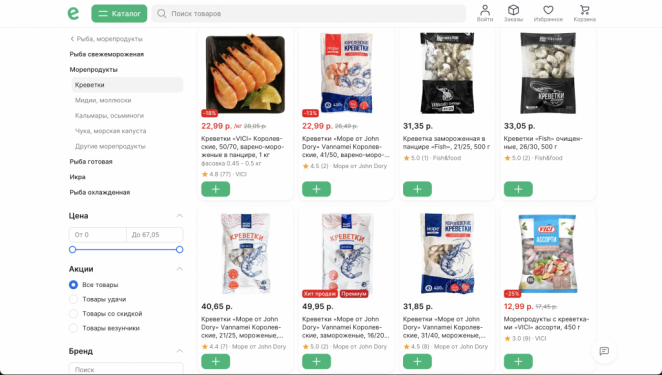 Креветки на сайте e-dostavka. Скриншот: edostavka.by