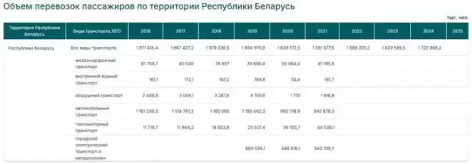 Если брать статистику по пассажиро-километрам, согласно сведениям Белстата, в 2024 году пассажирооборот составил 26,5 миллиарда пассажиро-километров. В 2019 году он составлял 27,6 миллиарда пассажиро-километров, или на 3,9% больше.