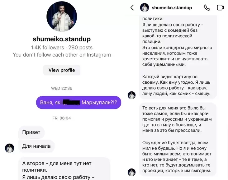 В начале июня комик Иван Шумейко устроил концерты на оккупированной территории Украины — в Мариуполе, Донецке и Макеевке. Теперь он объяснил, как относится к своему неоднозначному туру.