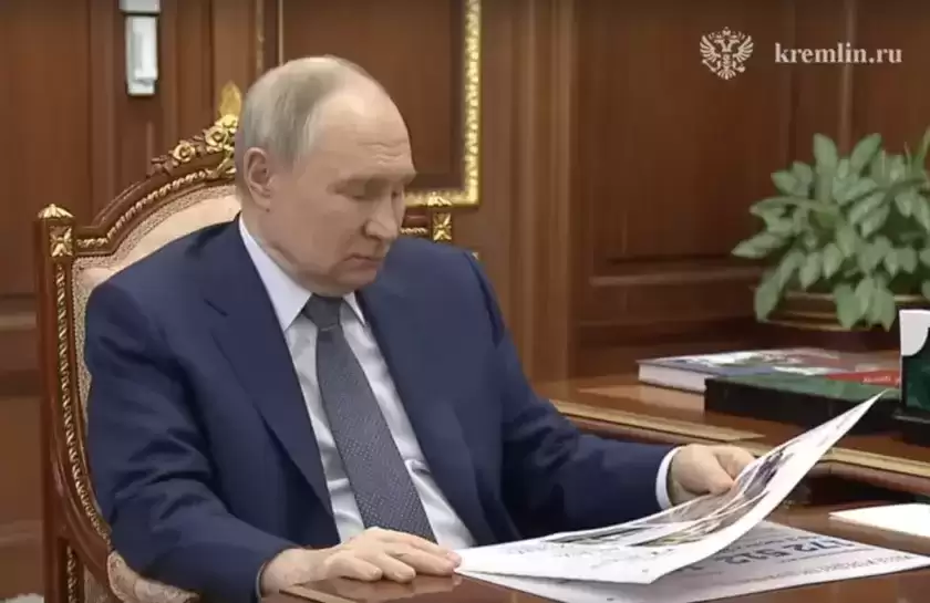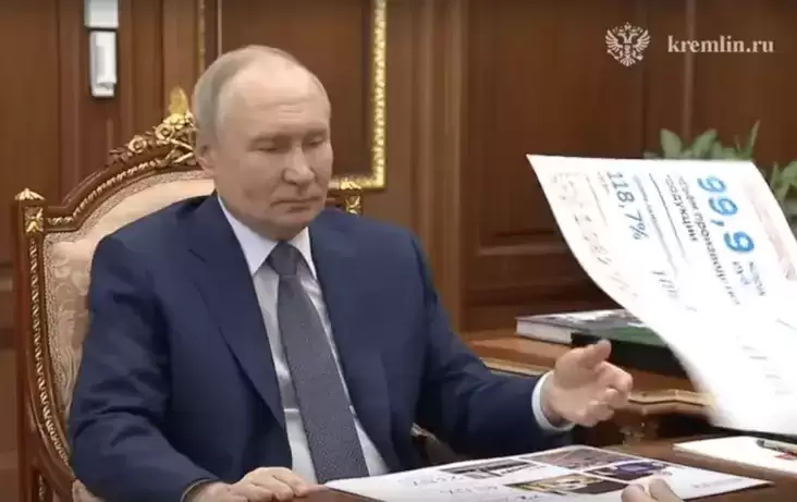 Внимание на этой встрече привлекла распечатанная презентация, которую чиновник показывал 72-летнему Владимиру Путину.