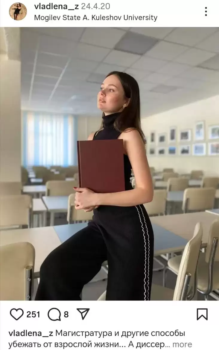 Сама Владлена окончила Могилевский государственный университет имени Аркадия Кулешова.