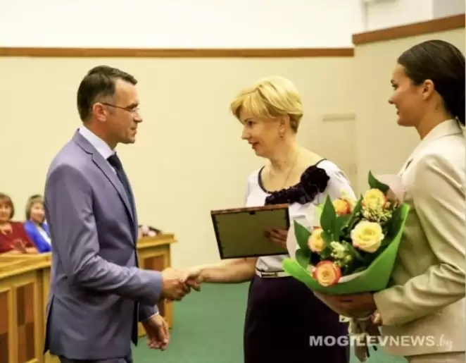 Награждение работников налоговых органов (Владлена с цветами), 2020 год. Фото: mogilevnews.by