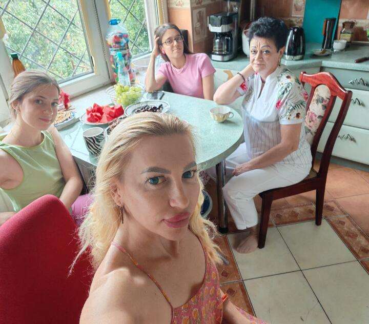 Елена (вторая справа) с 67-летней мамой Ларисой, 17-летней дочкой Евгенией и 10-летним сыном Тимофеем, Польша, лето 2025-го. Фото: личный архив