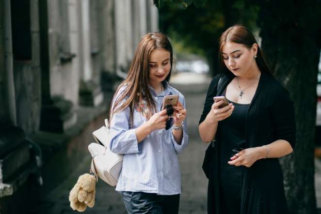Девушки пользуются мобильными телефонами на улице. Снимок имеет иллюстративный характер. Фото: Freepik