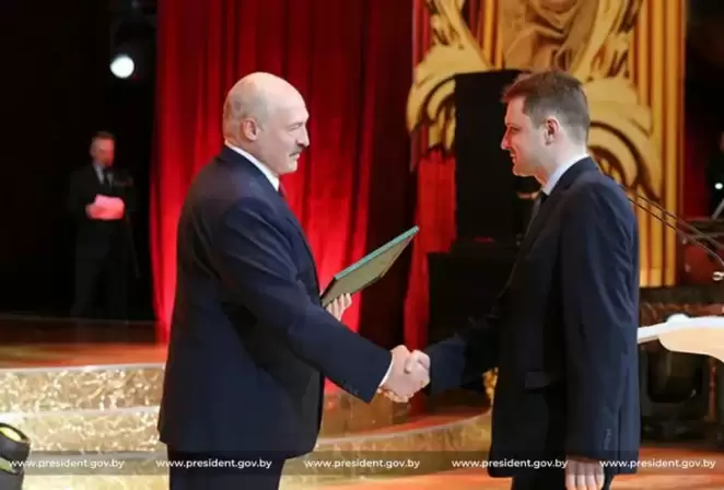 Лукашенко награждает Сергея Адерихо — будущего информатора Котова. Фото: Белта