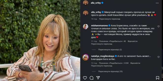 Не секрет, что откровенный разговор артистки, в котором она раскритиковала российские власти и осудила кровавую войну, вызвал резонанс. Многие поддержали позицию Аллы Борисовны и поблагодарили ее.