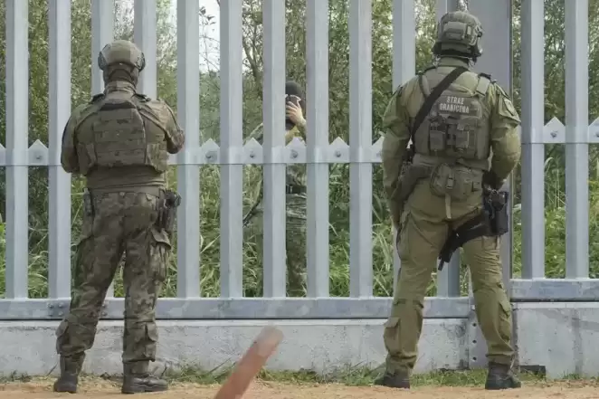Польские и белорусские пограничники лицом к лицу, 31 августа 2025. Фото: AP Photo / Czarek Sokolowski