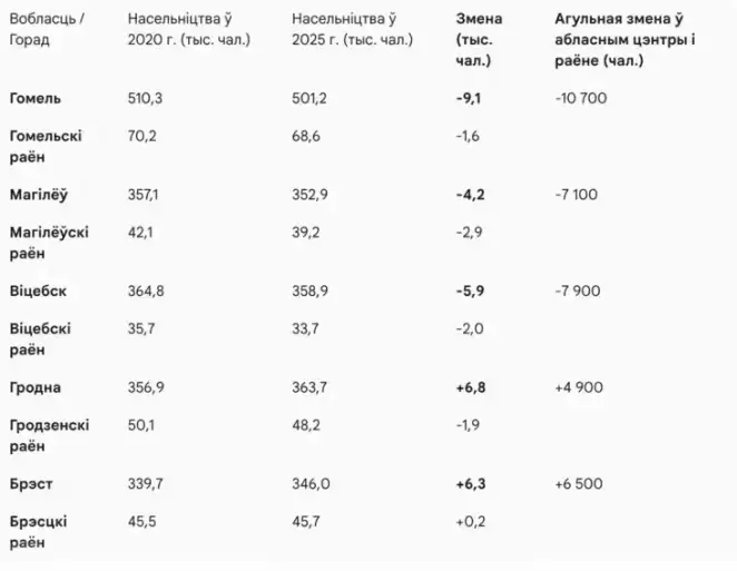 Как изменилось население в областных центрах и их районах в период с 2020‑го по 2025-й, по данным Белстата