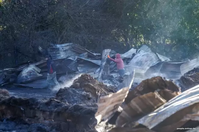 На подъезде к участку семьи Сенько открывается пасторальная картина: еще зеленое сентябрьское поле, на котором тихо пасутся несколько совсем молоденьких коров. Но стоит приблизиться к дому, запах гари практически сбивает с ног, быстро пронизывая одежду. Пожар, вспыхнувший на ферме в ночь с 21 на 22 сентября, стал для семьи настоящей трагедией. Дым не развеялся даже спустя четверо суток, а разбирать завалы хозяевам разрешили только сейчас, пишет «Онлайнер».
