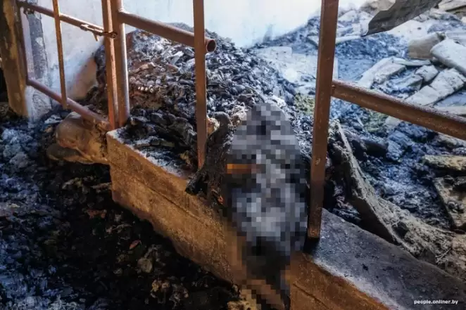 «Смотрите, вот корова, которая выходила… — указывает Татьяна на обгоревшее тело животного, лежащее прямо у входа. — На это нельзя смотреть без слез! Мы никого не покупали… Всех растили сами, они здесь родились и здесь же умерли…».