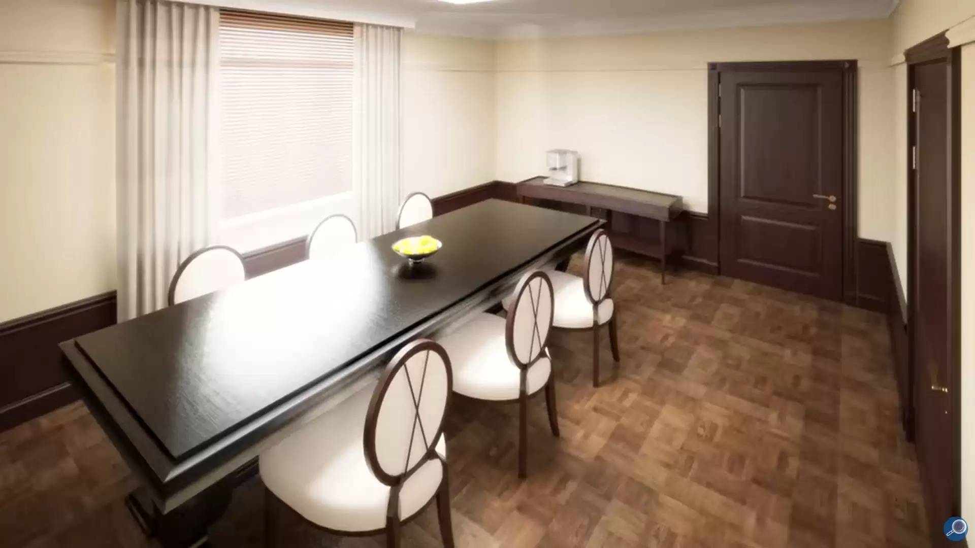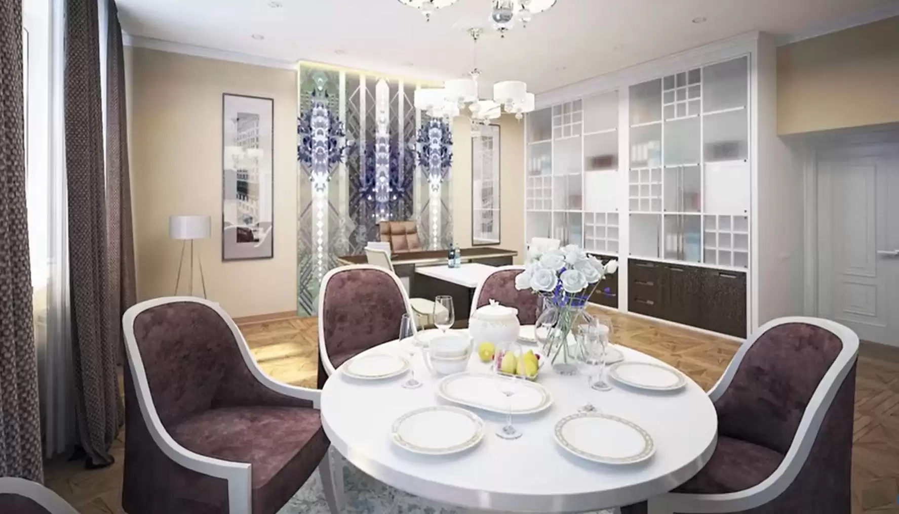 В столовой правителя обеденный стол сервируется фарфоровой посудой, хрустальными стаканами, красивыми салфетками.