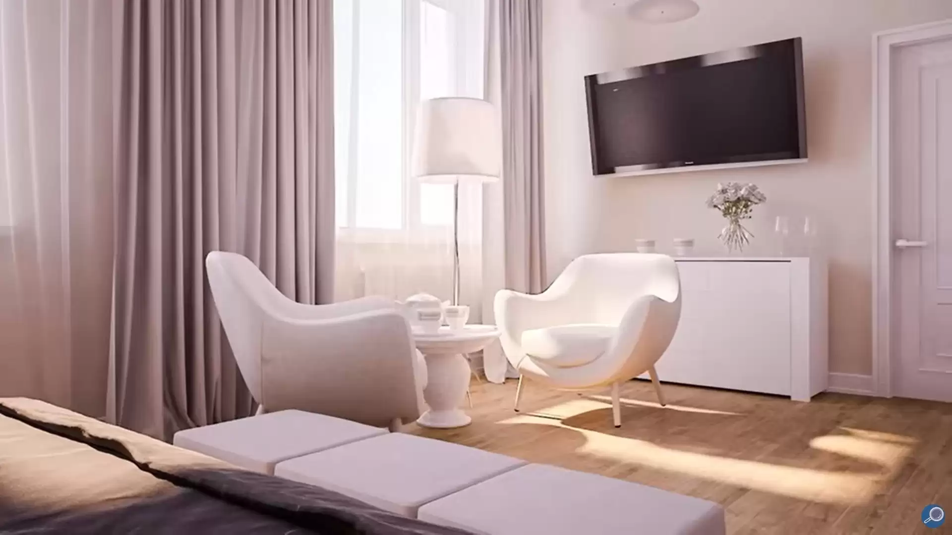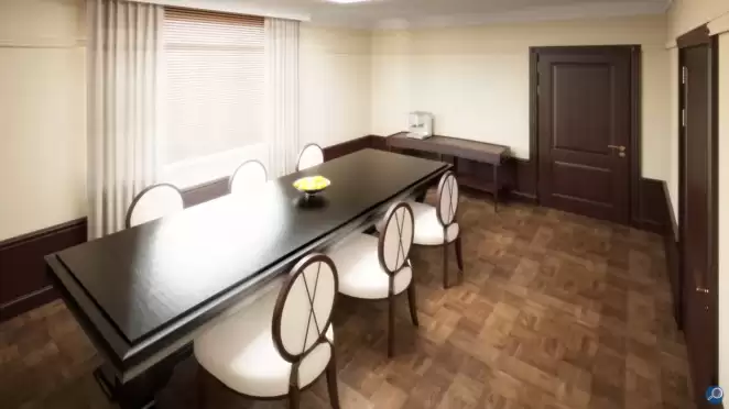 Чтобы избежать холодной атмосферы больницы и сделать помещение VIP-зоны максимально уютными, стены коридора декорированы картинами, на столиках расположены декоративные цветочные композиции, а помещение столовой выполнено в лёгкой классике.