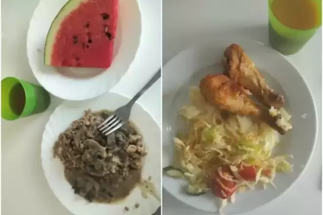 — Свет выключают в 22.00, в это же время автоматически отключают розетки, — добавляет детали Валерий. — Завтрак, по-моему, в 10.00, обед — в час дня, что-то около того. И ужин где-то в пять часов вечера. Еду готовили на оба отделения, потому что кухня одна. Порции для меня казались немного маловаты, но сама по себе еда на уровне. Например, один раз давали арбуз и микс жареного лука, шампиньонов, мяса и какого-то такого сливочного соуса. Ну и компот. В другой день были жареные куриные ноги, салат, пюре. Один раз на завтрак давали блины с клубничным вареньем. Бывали разные супы: рассольник, с морковкой и помидором, макаронный. Кстати, там еще можно самому заказывать еду из магазинов. Но она обязательно должна быть запакованной.