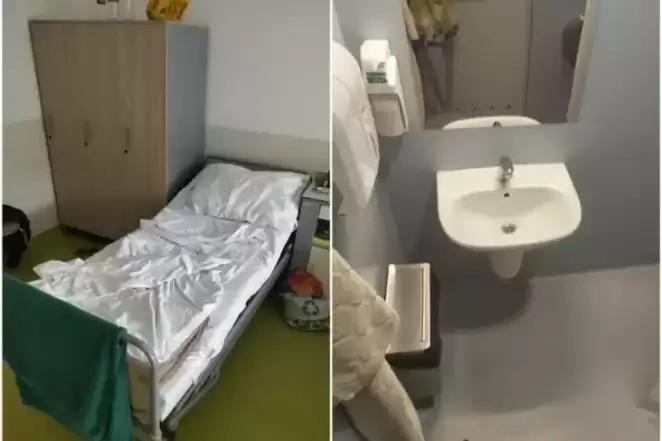 Палата в психиатрическом отделении больницы, где лежал Валерий (слева) и туалет с душем в отделение для некритических пациентов (справа). Польша, лето 2025 года. Фото: личный архив