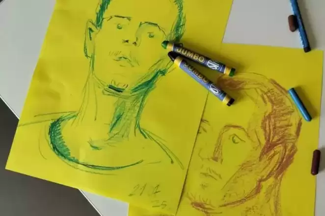 Автопортреты, которые Валерий нарисовал во время лечения. Польша, лето 2025 года. Фото: личный архив