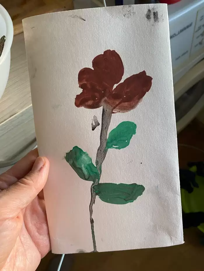 Это открытка от сына Ксении, нарисованная им в школе. Подарок маме ко дню рождения. Незрячие дети тоже рисуют