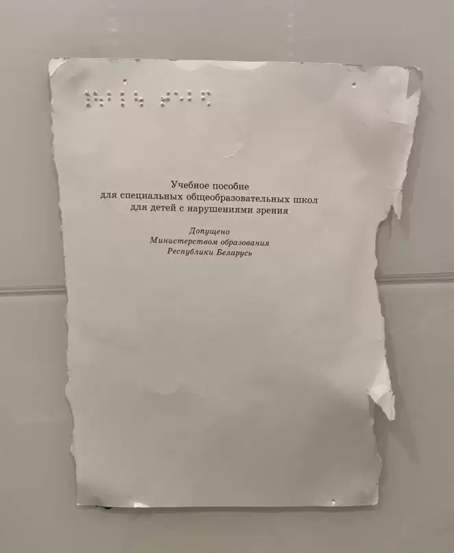 Эту записку шрифтом Брайля Ксении написал сын. Она повесила ее на дверь и несколько месяцев смотрела на нее каждый день. «Здесь написано: «люблю тебя».