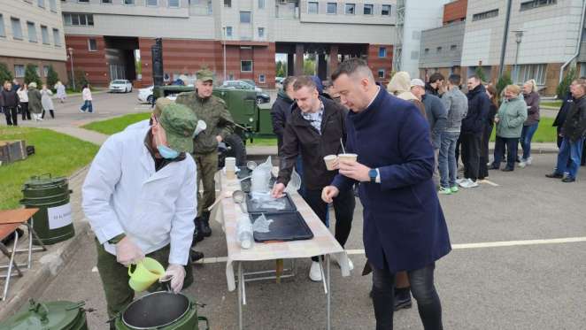 Полевая кухня перед главным зданием ПВТ во время празднования Дня сотрудников радио, телевидения и связи перед Днем Победы. Минск, Беларусь. 7 мая 2025 года. Фото: Park.by