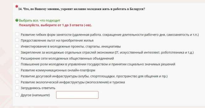 Один из вопросов опроса «Образ будущего Беларуси 2026–2030». Скриншот с сайта меркаванне.бел
