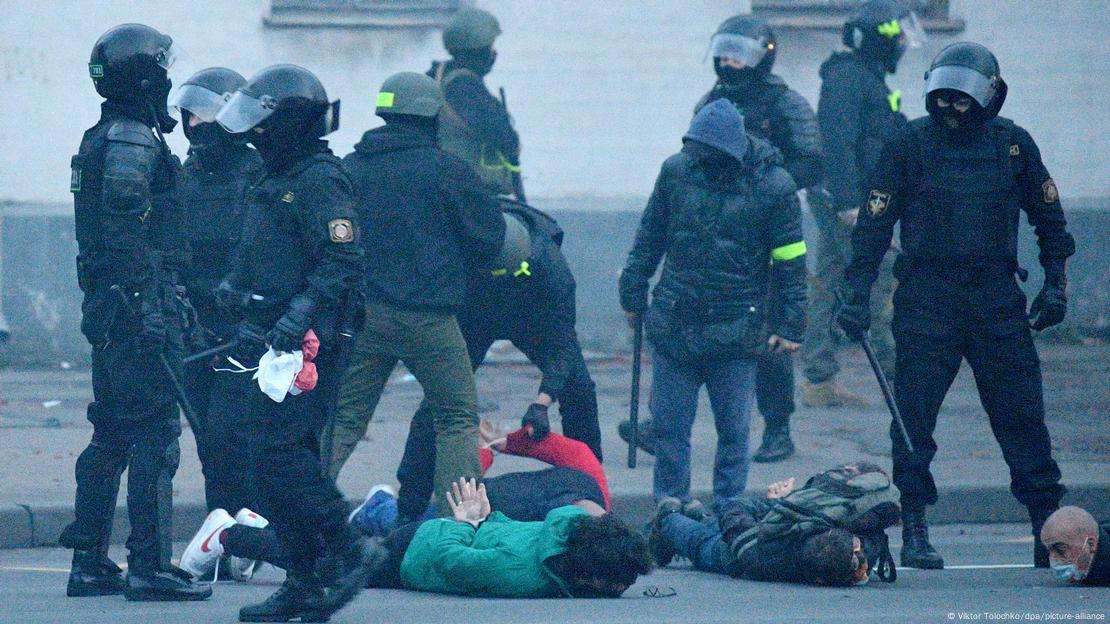 Белорусская милиция во время протестов 25 октября 2020 года. Фото: Viktor Tolochko / dpa / picture-alliance
