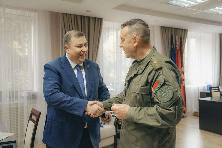 Вице-губернатор Пензенской области Сергей Федотов (слева) и командующий внутренними войсками, генерал-майор Николай Карпенков (справа) договорились о взаимном сотрудничестве в сфере военно-патриотического воспитания молодежи. Фото: t.me/vpkvvrb