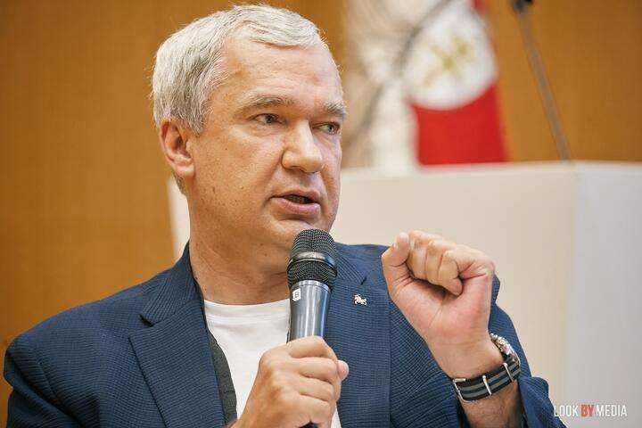 Заместитель главы ОПК Павел Латушко во время конференции «Новая Беларусь». Польша, Варшава, 9 августа 2025 года. Фото: LookByMedia