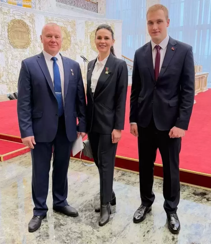 Работает она в Белорусском фонде мира. Сейчас Марина, которой выдали звание Героя Беларуси, регулярно участвует в пропагандистских мероприятиях, иногда вместе с Олегом Новицким.