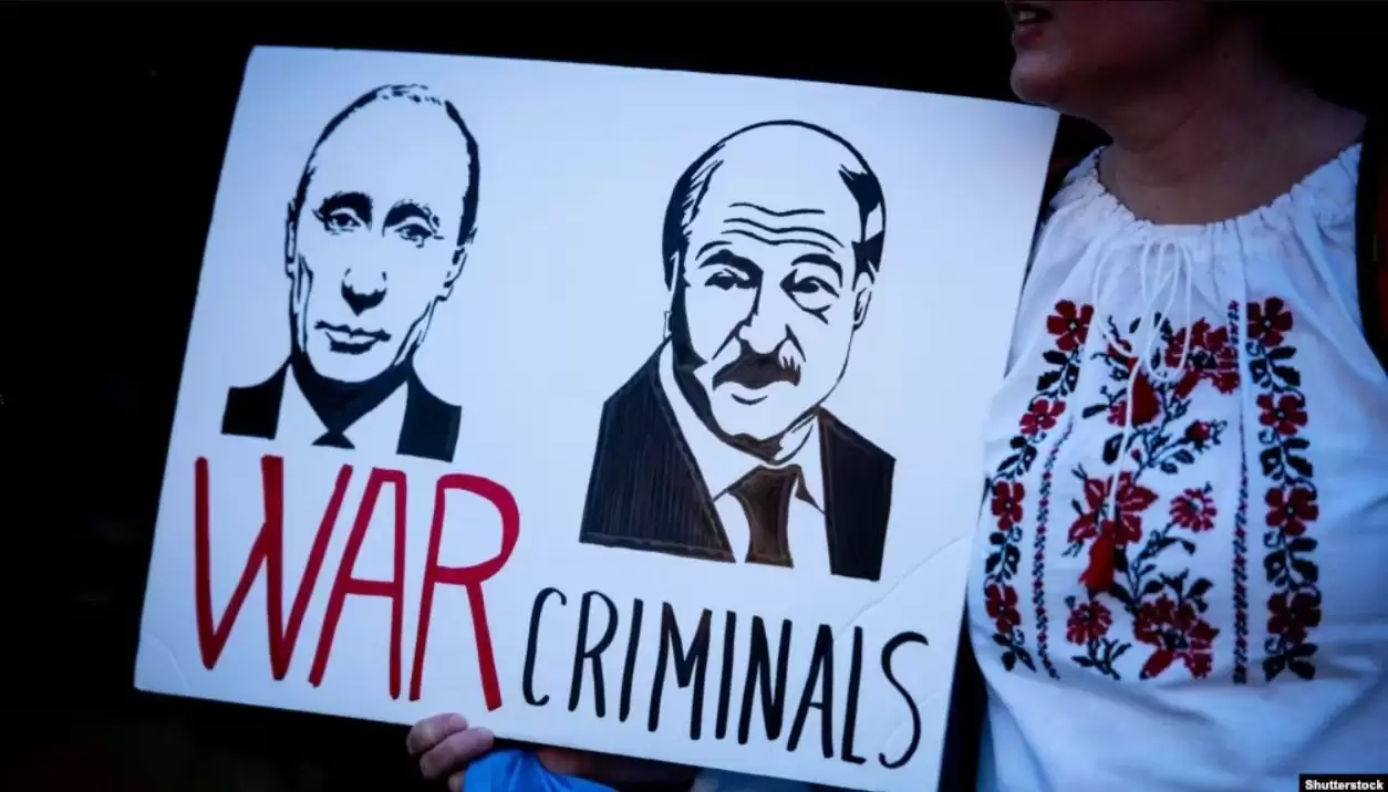 Портреты Путина и Лукашенко во время протестной акции в Лондоне 26 марта 2022 года