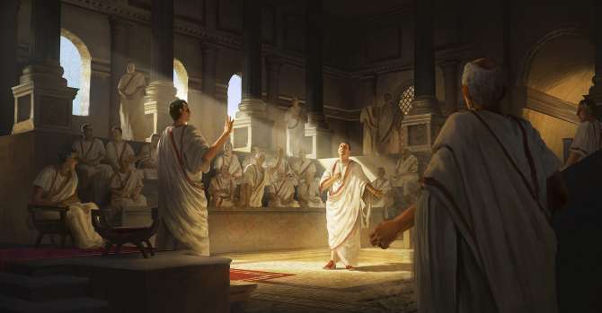 - Случилось это после того, как в Риме раскрыли заговор Луция Сергия Катилины. Говорят, заговорщики собирались убить консулов, казнить сенаторов и захватить власть в государстве. Шокированные сенаторы требовали для заговорщиков самого сурового наказания, причем без соблюдения судебных формальностей. Ну, потому что время было такое, когда не до законов.