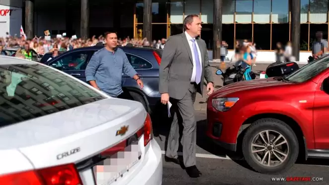 Архивное фото. Владимир Караник, в 2020 году министр здравоохранения, вместо диалога убегает от протестующих у здания Минздрава